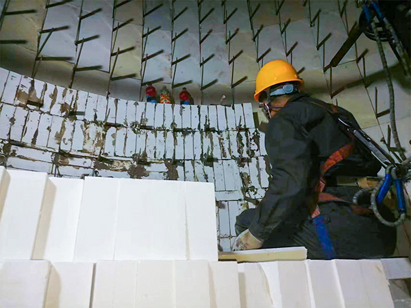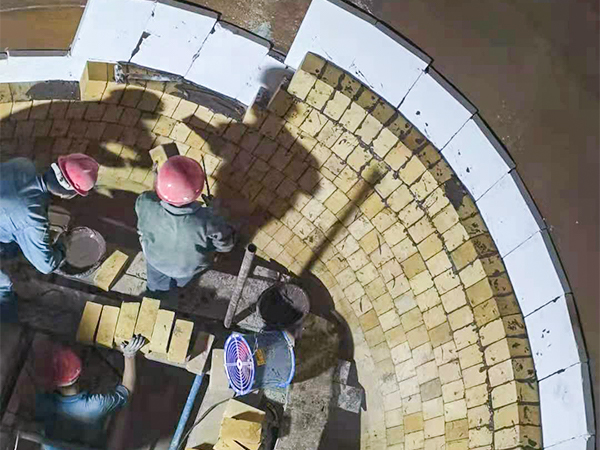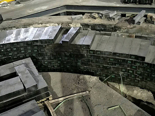 鄭州榮盛為客戶電爐更換鋁碳磚施工現場