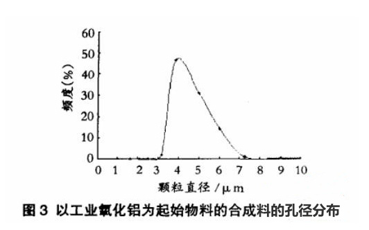 對(duì)1350℃下合成的莫來(lái)石輕質(zhì)骨料用壓汞儀測(cè)定孔徑分布狀況,結(jié)果如圖3所示。